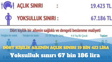 DİSK Birleşik Metal-İş Sınıf Araştırmaları Merkezi (BİSAM) dört kişilik bir aile için açlık sınırının 19 bin 423 lira, yoksulluk sınırınınsa 67 bin 186 lira olduğunu açıkladı.