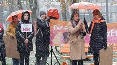 Kadına yönelik şiddette dikkat çekmek için kar yağışına rağmen eylem yaptılar