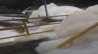 Yalova -Yenikapı seferini yapan arabalı feribot fırtınaya yakalandı. Yükselen dalgalar 4 araca zarar verdi. Korku dolu anlar cep telefonu kamerasına yansıdı.